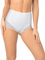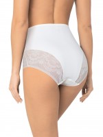 Трусы с высокой линией талии. Выполнены из деликатного эластичного полотна. Вырез ножки декорирован плоским кружевом с цветочным рисунком. По талии пришита эластичная тесьма. Хлопковая ластовица. Благодаря особенностям кроя изделие абсолютно незаметно под одеждой, при этом трусы обладают легким корректирующим эффектом. 1 штука в упаковке, упаковка - адресная картонная коробочка