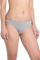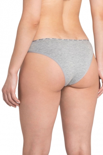 Трусы-бразилиана со средней линией талии, выполнены из однотонного хлопкового плотна. Для обработки талии использована узкая декоративная резинка с контрастным логотипом. Хлопковая ластовица. Упаковка – картонная коробочка