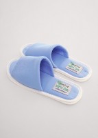 Лёгкие, домашние тапочки с открытым носом из хлопкового трикотажного полотна , нашивка. Толстая подошва.