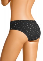 Трусы бикини женские из эластичного хлопкового полотна. Обработка краев по талии - широкая внутренняя резинка, по ноге - полуокантовка. По переду жаккардовая нашивка.