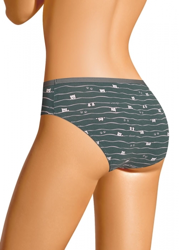 Трусы бикини женские из эластичного хлопкового полотна. Обработка краев по талии - окантовочная резинка, по ноге - полуокантовка. По переду атласный бант.
