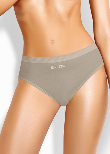 Трусы слипы женские из эластичного хлопкового полотна. Обработка краев по талии - широкая резинка в рубчик, по ноге - полуокантовка. Спереди принт.
