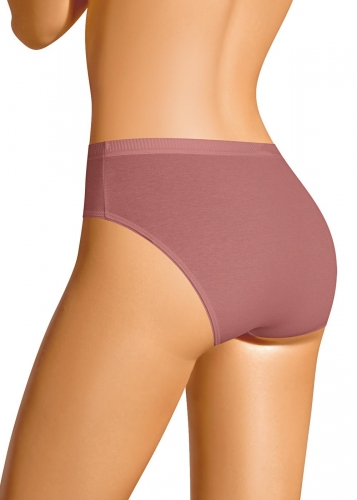 Трусы слипы женские из эластичного хлопкового полотна. Обработка краев по талии - широкая резинка в рубчик, по ноге - полуокантовка.