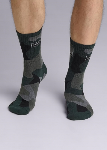 Описание: Носки мужские в набивку Геометричесикй камуфляж Состав: 70% хлопок, 25% полиамид, 5% эластан