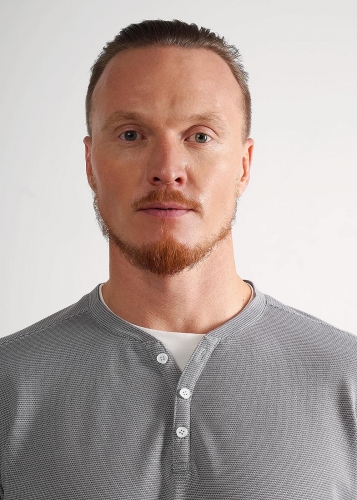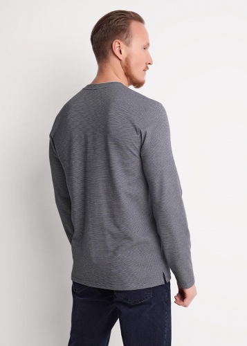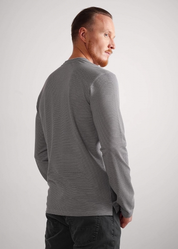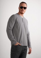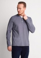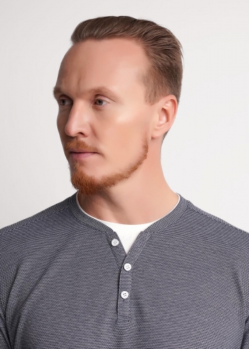 Мужской лонгслив из трикотажного фактурного полотна с длинным рукавом и декоративной планкой на пуговицах. Контрастная отделка горловины акцент. Удобная и стильная модель для повседневного образа.
