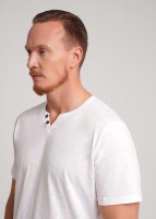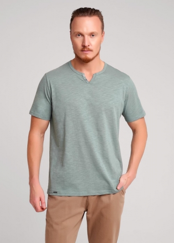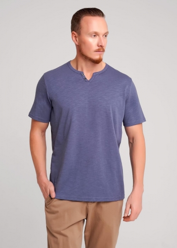 Футболка мужская с округлой горловиной и планкой из фактурного полотна флам. Данная модель прекрасно комбинируется с джинсами или шортами. Модель дополнена имиджевой фурнитурой. Отличное решение на лето для прогулок с друзьями или поездки на отдых.