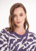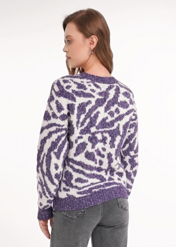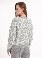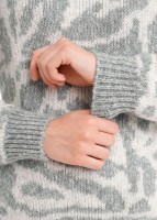 Вязаный джемпер прямого силуэта из акриловой пряжи с добавлением хлопка. Длинный втачной рукав. По низу рукава и изделия манжеты. Основное переплетение жаккард. Округлая горловина с бейкой.