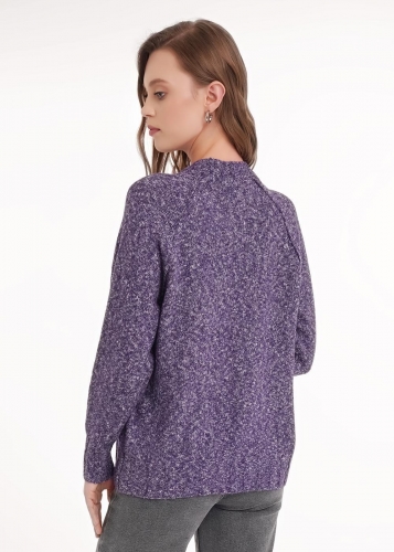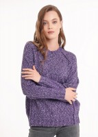 Вязаный джемпер прямого силуэта из акриловой пряжи с добавлением хлопка.Основное переплетение гладь. Длинный рукав реглан. Припуски наружу ,красивые сбавки по рукаву реглан. По низу рукава и изделия манжеты. Округлая горловина с бейкой.
