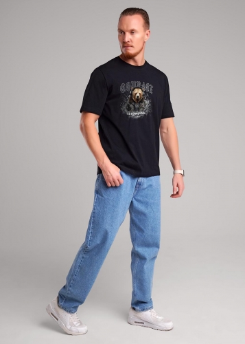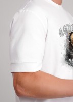 Футболка увеличенного объема из трикотажного плотного, гладкого полотна. Короткие рукава с манжетами. Изделие дополнено дизайнерским принтом. Отличный вариант для встреч с друзьями.