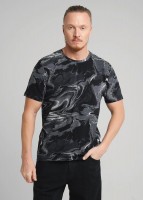 Футболка из дышащего хлопкового полотна с округлой горловиной. Модель с абстрактной дизайнерской набивкой. Прекрасно впишется в гардероб и подойдёт к любому низу. В данной футболке можно отправиться на работу или прогулку с друзьями.