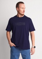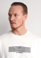 Футболка из трикотажного полотна. С коротким рукавом, круглой горловиной, боковыми разрезами и удлиненной спинкой. Дополнена дизайнерским принтом. Отличный вариант для встреч с друзьями и прогулок.