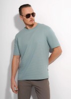 Футболка мужская, увеличенного обьема, из трикотажного фактурного полотна с эффектом валиков. Круглый вырез горловины и короткий втачной рукав. Отличный вариант для повседневного образа.