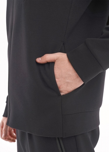 Мужская комбинированная куртка из гладкого и фактурного полотна. Изделие дополнено карманом на молнии, имиджевой фурнитурой и принтом. Комфортный и практичный вариант для активных мужчин.