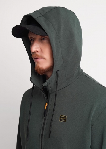 Мужская куртка из трикотажного полотна дабл фейс на молнии. Изделие дополнено 2-мя вместительными карманами на молнии, имиджевым принтом. Комфортный и практичный вариант для активных мужчин.