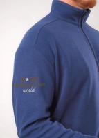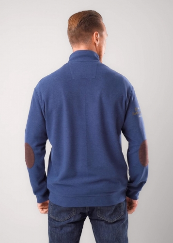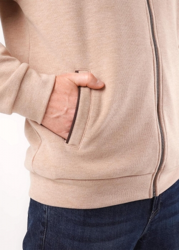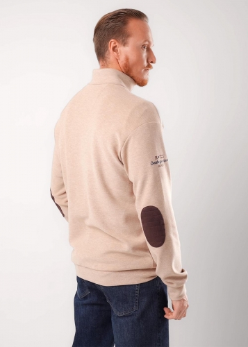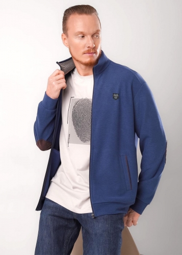 Мужская куртка на стойке с застежкой на молнию. Изделие выполнено из трикотажного полотна с мягкой бархатистой лицевой стороной. Модель дополнена вышивкой, налокотниками и вязаными отделками. Прекрасно подойдёт для прогулок и встреч с друзьями.