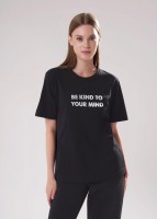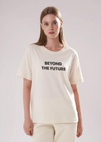 Футболка прямого силуэта из хлопкового трикотажного полотна. Короткий втачной рукав. Округлая горловина с обтачкой. Спереди принт.