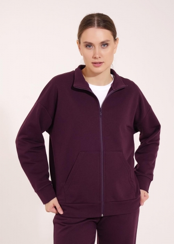 Куртка спортивная из трикотажного полотна футер, свободного кроя на молнии. По горловине стойка. Длинный рукав со спущенной линией плеча. По низу рукава и изделия манжеты. Спереди карман кенгуру.