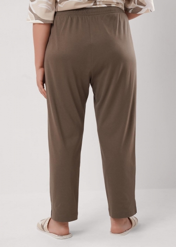 Набор одежды из трикотажного полотна с модалом.Джемпер с коротким цельнокроенным рукавом.Округлая горловина с обтачкой.Спереди рельефы,принт.По низу кулиса из окантовки.Брюки длиной 7/8,с поясом на резинке.Боковые карманы с отрезным бочком,внизу разрезы.
