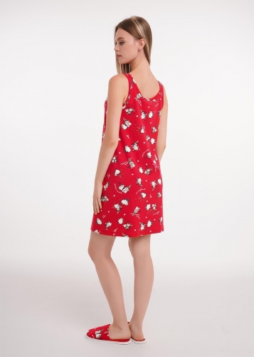 Сорочка ночная из хлопкового трикотажного полотна с эластаном, прямого силуэта на бретелях. Округлая горловина. По горловине и пройме окантовка Спереди по горловине бант.