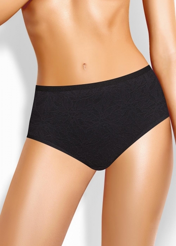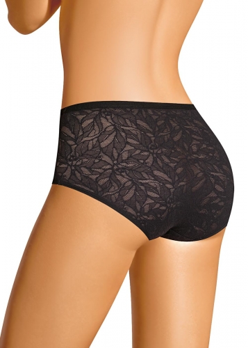Трусы макси женские из эластичного ажурного полотна, по переду ажурное полотно дублируется хлопковым. Обработка краев по талии и ноге окантовочная резинка.