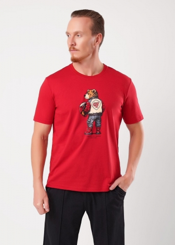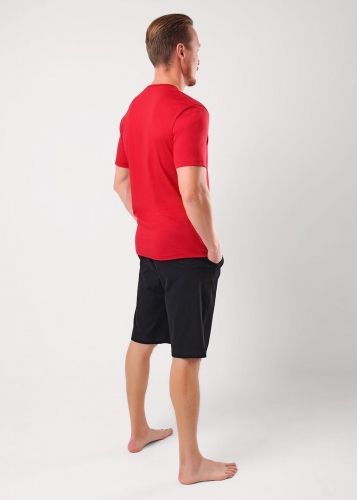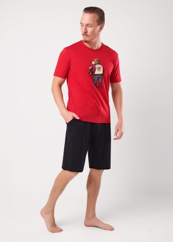 Набор мужской, состоящий из футболки и шорт. Футболка из хлопковой кулирной глади с округлой горловиной, коротким рукавом и дизайнерским принтом. Шорты из плотной кулирной глади с эластаном на эластичном поясе с функциональными карманами и шнуром.
