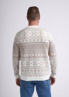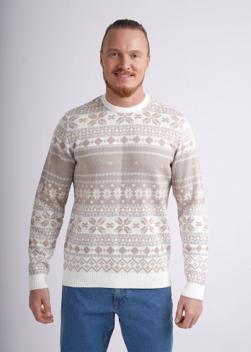Джемпер мужской с округлой горловиной, длинным рукавом на манжете и поясом. Прекрасно сохраняет тепло, комфортный в носке. Оригинальности модели придает орнамент.