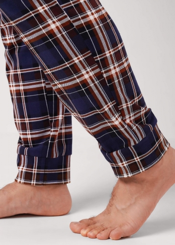 Мужские домашние брюки на манжете из хлопковой кулирной глади с карбоном в клетку. Мягкие и комфортные, прекрасно держат форму и не сковывают движений. Отличное решение для создания стильного образа на каждый день.