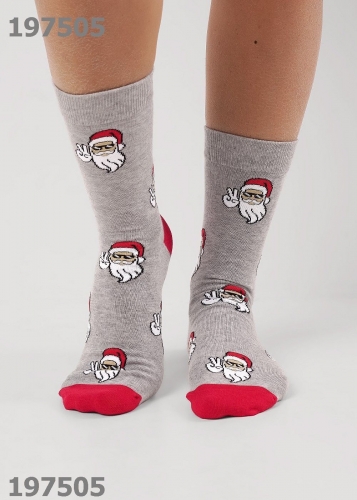 носки мужские с выделенным мыском и пяткой , с рисунками лицо деда мороза
