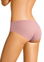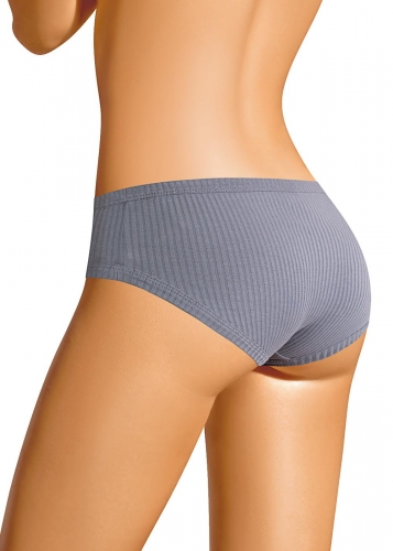 Трусы-хипстеры женские из хлопкового полотна кашкорсе. Обработка краев по талии обтачкой из основного полотна с плоским швом, по ноге - подгибка. По переду жаккардовая нашивка.