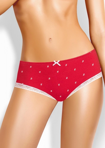 Трусы шорты женские из эластичного хлопкового полотна. Обработка краев по талии - ажурная резинка, по ноге - кружево. По переду атласный бант.