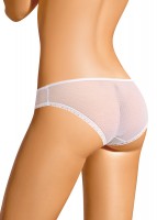 Описание: Трусы - бикини из ажурной сетки. Спереди декорированы широким кружевом в цвет и атласным бантом. Ластовица из хлопка. По талии резинка с фестоном. По ноге узкое кружево. Состав: Состав: 92% хлопок, 8% эластан Кружево: 90% нейлон, 10% эластан
