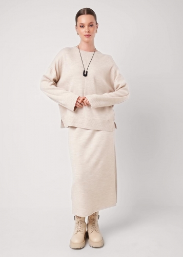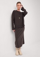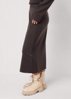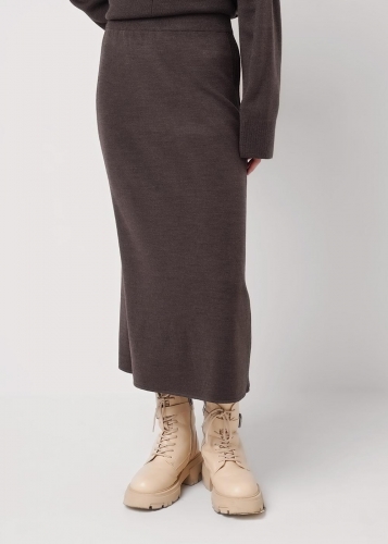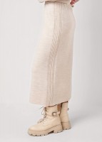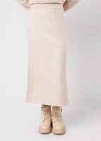 Вязаная юбка прямого силуэта длиной миди из акриловой пряжи переплетение гладь. Боковые вертикальные полосы. По талии пояс на внутренней резинке.