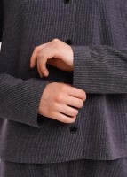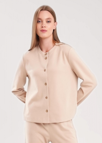 Жакет прямого кроя из трикотажного поливискозного полотна джерси с застежкой на пуговицы. Втачной длинный рукав. Округлая горловина с обтачкой. По низу рукава и изделия потайной стежок.