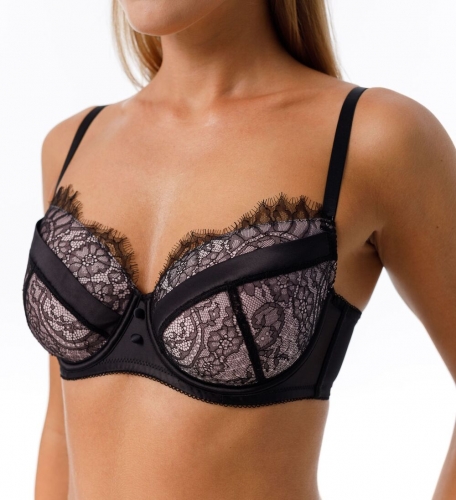 Бюстгальтер на поролоне на каркасах, выполнен из сетки и кружева. Идеально приподнимает и поддерживает грудь, создавая красивую зону декольте. На стане бюстгальтера вертикальные упругие, корректирующие пластины, позволяющие прилегать к телу и не скручиваться боковой части бюстгальтера. Бретели несъёмные.