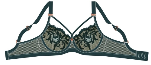 Бюстгальтер на поролоне на каркасах, со стрепами. Выполнен из эластичной сетки с вышивкой. Идеально приподнимает и поддерживает грудь, создавая красивую зону декольте. На стане бюстгальтера вертикальные упругие, корректирующие пластины, позволяющие прилегать к телу и не скручиваться боковой части бюстгальтера. Бретели несъемные. Украшение: медальон с логотипом COQUETTE REVUE.