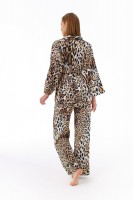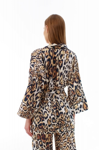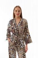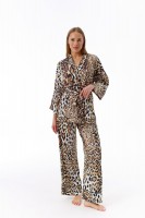 Шёлковая пижама с принтом в виде леопардового рисунка. Пижама выполнена из мягкой и приятной на ощупь шёлковой ткани(армани шёлк), которая обеспечивает комфортный сон. Принт в виде леопарда добавляет изысканности и стиля этому предмету одежды. Такая пижама может стать отличным дополнением к домашнему гардеробу.