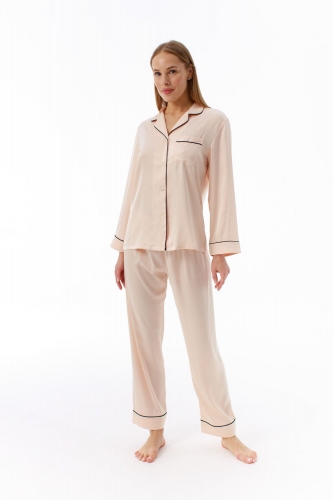 Пижама состоит из рубашки с длинным рукавом и брюк. Выполнена из невероятно мягкого и нежного материала.