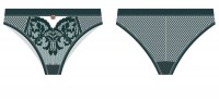 Трусы-бразилиана со средней линией талии, выполнены из эластичной сетки с вышивкой. Украшение: медальон с логотипом COQUETTE REVUE.