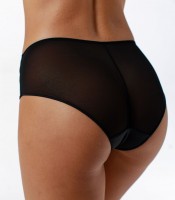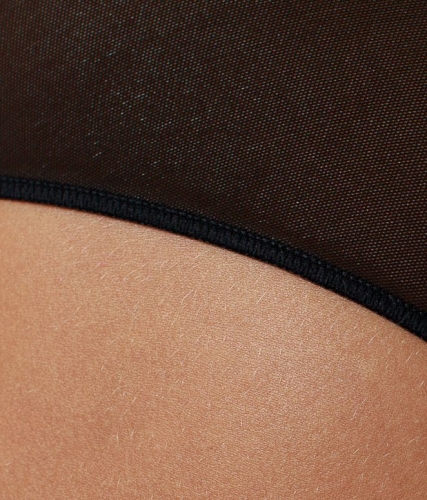 Трусы-панти со средней линией талии, выполнены из эластичной микрофибры и сетки с декоративным геометрическим рисунком. Украшение: медальон COQUETTE REVUE.