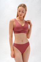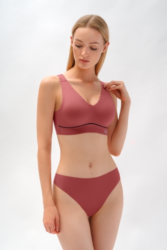 Бесшовный формованный бюстгальтер — Кроп топ изготовленный по технологии soft Skin, без застежки. Широкая рельефная бретель с волнообразным краем. Декоративная полоска на стане, подчеркивающая силует. Материал — микрофибра. Состав: Основная ткань и подкладка: 60% Полиамид, 40% Спандекс