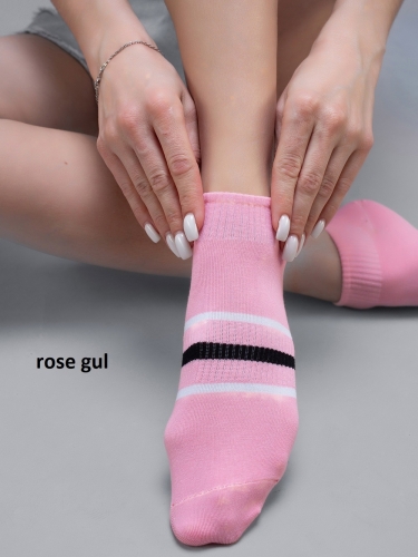 Хлопковые женские носки под кроссовки с комфортной широкой резинкой "в рубчик" и дополнительной перетяжкой по стопе, которая обеспечивает оптимальную фиксацию на ноге. Стопа модели декорирована ярким рисунком "разноцветные полоски". Носки цветные, доступна обширная гамма оттенков.