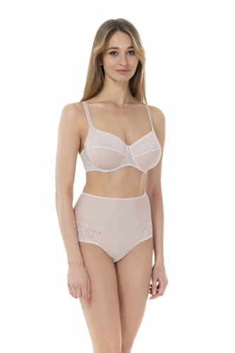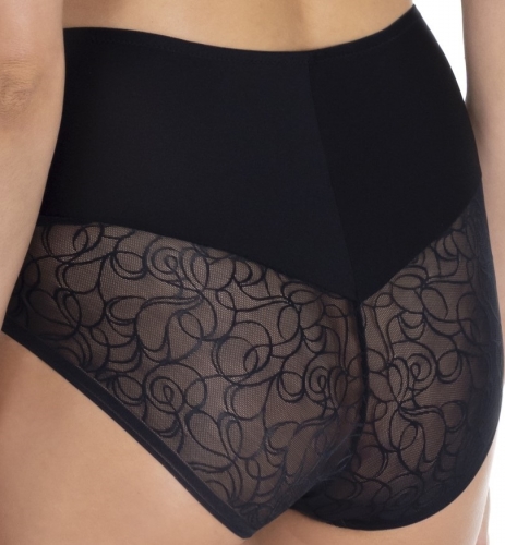 Трусы с высокой линией талии из эластичного кружева и эластичного полотна. Нижний срез без отделочных лент.