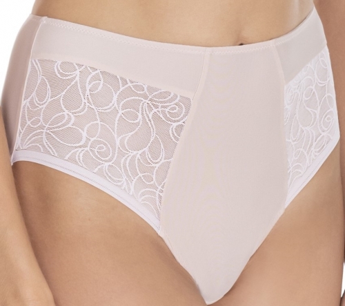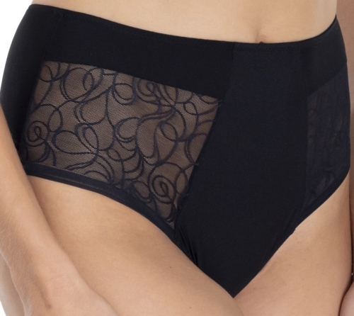 Трусы с высокой линией талии из эластичного полотна. Спереди в боковой части детали из эластичного кружева. По нижним срезам отделка тонкой эластичной лентой.