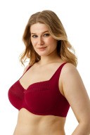 Бюстгальтер на каркасах с полудублированной чашкой. Чашки овальной формы с диагональным членением и боковым подрезом создают округлую наполненную форму и обеспечивают надёжную, высокую и комфортную поддержку груди. Усиленная бретель снимает нагрузку с плечевого пояса. Широкий стан с боковыми упругими пластинами плотно облегает тело и обеспечивает стабильную комфортную посадку бюстгальтера на фигуре
