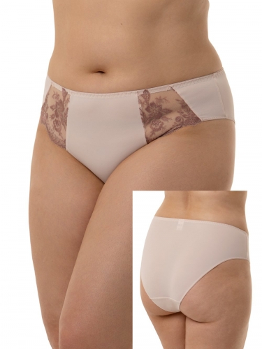 Трусы слипы из эластичного полиамидного полотна. Эластичный материал обеспечивает хорошее облегание, не ограничивая свободу движений. На передней половинке трусов выполнены вставки из вышитой сетки. По вырезам ножек плоскими швами настрочена тонкая, но упругая эластичная тесьма, практически незаметная под лёгкой облегающей одеждой. Модель с комфортной низкой посадкой.