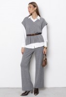 Вис 48%, ПЭ 29%, Нейлон 19%, Эластан 4%Брюки свободного силуэта с карманами по бокам и поясом на комфортной резинке. Модель миксуется с джемперами и жилетом данной коллекции, создавая новые образы на каждый день. Представлены в трех цветовых решениях.