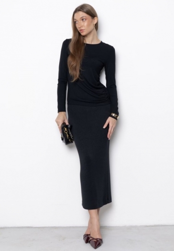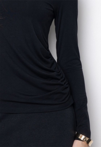 Бамбук 94%, Эластан 6%Джемпер прилегающего силуэта из натурального трикотажного полотна высокого качества, в составе которого бамбук. Легкая ассиметричная драпировка по низу изделия с одной стороны добавляет образу деликатный акцент. Джемпер идеально сочетается со всеми моделями коллекции «Джерси». Представлен в двух цветовых решениях.
