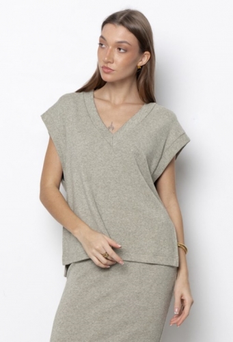 Жилет свободного силуэта с Vобразным вырезом и расслабленными приспущенными рукавами. Представлен в трех цветовых решениях.