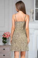 Короткая сорочка Mia-Amore на тонких бретелях из тканной принтованной вискозы в сочетании с изысканным кружевом. Декольте изящно декорировано роскошной вышивкой на тюле, которую выгодно подчеркивает тонкая черная окантовка. По низу изделия узкое кружево. Сорочка украшена элегантным черным бантиком с подвеской в виде кисточки.
