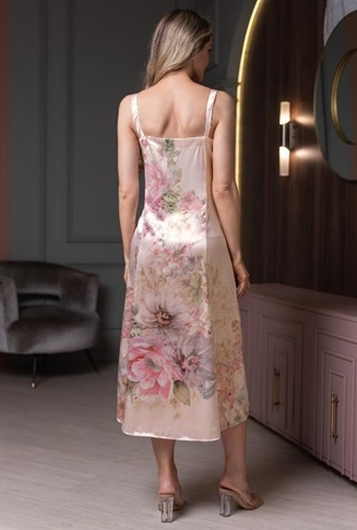 Длинная сорочка Mia-Amore выполнена из смесового принтованного шёлка. Сорочка с рельефами и широкими регулируемыми бретелями.